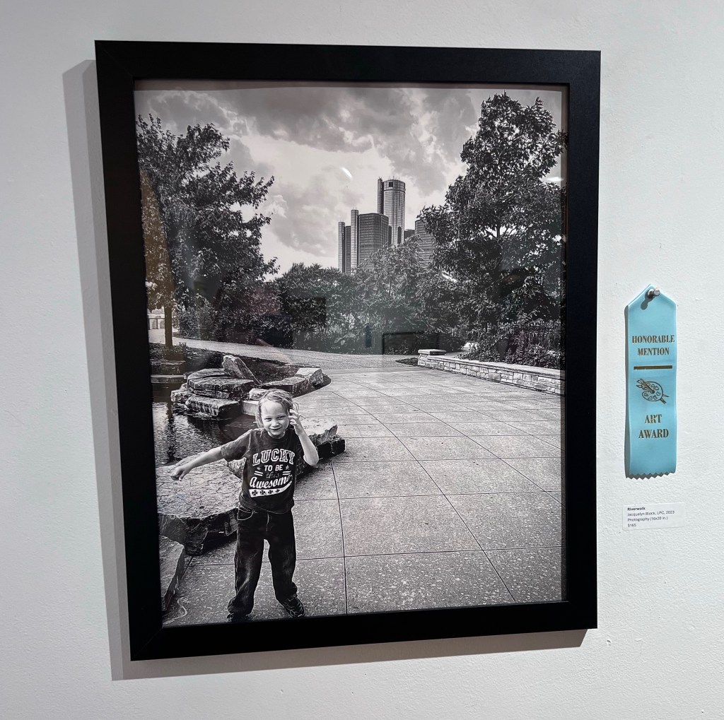 Today was an exciting day for me. We had the opening of our group exhibition themed The Outdoors, this afternoon. While most of my family stayed home with a cold, my youngest son and I picked up my mom, who also has a piece in this show, and headed up to the Anton Art Center in Mt. Clemens for the opening. My son is the subject in the photograph I entered so he got a lot of attention which he loved.