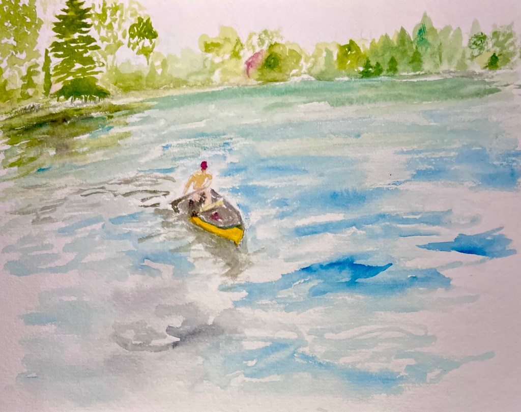 So for today’s painting I chose to find some of my summer photos to choose for inspiration. I decided on a picture I took of my husband canoeing at my mom’s cottage a few summers ago. I think it turned out pretty good, although I need to practice painting water more, I think. My daughter really likes it so that’s a great compliment.