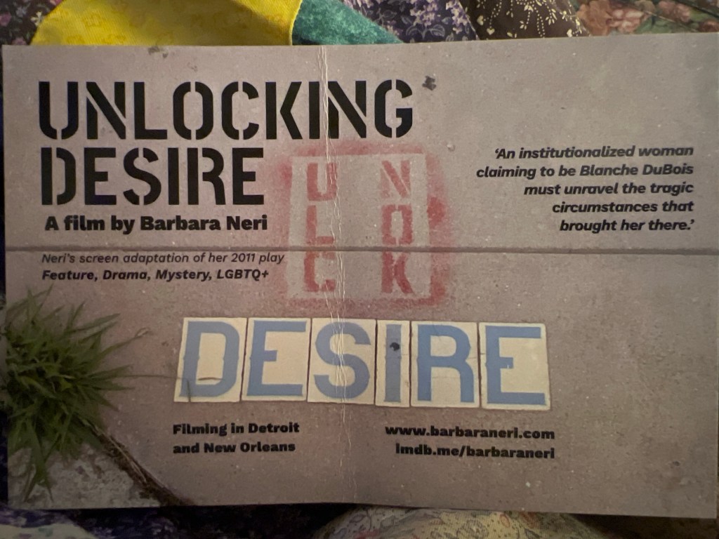 This evening my mom and I attended the preview of a film in production, Unlocking Desire by Barbara Neri. We were treated to the preview, some of the scenes that have been shot and edited as well as a song recorded for the film. The presentation was great and I can’t wait to see the finished film.