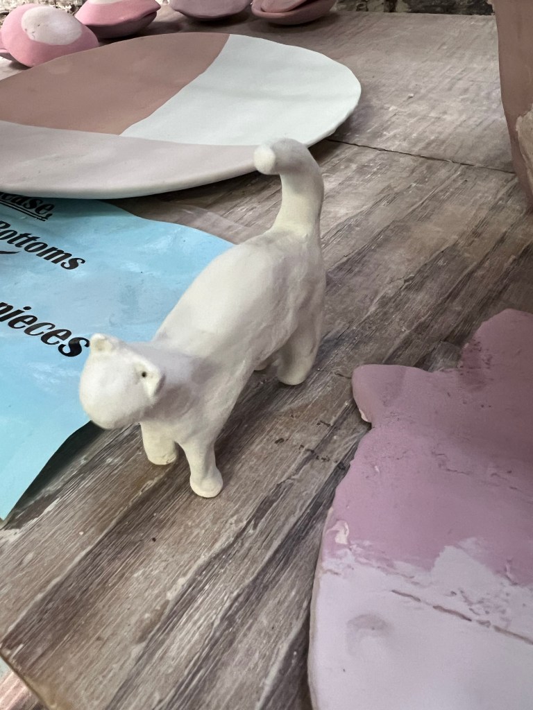 My giraffe from last week slow dried with no cracks showing up so he was moved to the kiln room. Then I glazed a few of the pieces I made previously.