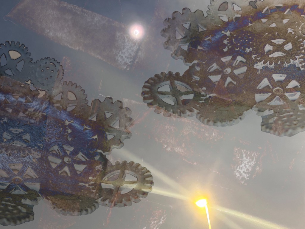 I even had a little time this evening to make a new composite photograph. I decided to use some shots I took of my recent pottery pieces combined with a photo I took of the sky during the solar eclipse. The glasses I was using to filter the light slid aside and I got this interesting image. I think it paired nicely with the gears and textured looks from the r pottery layers.