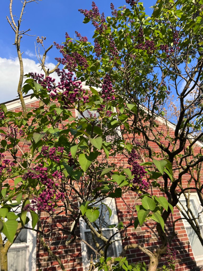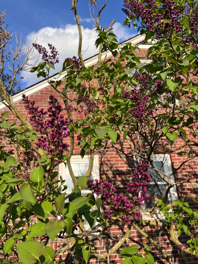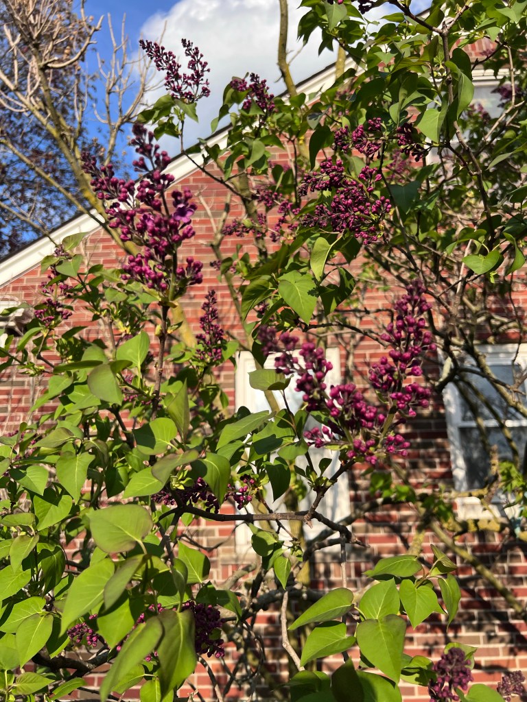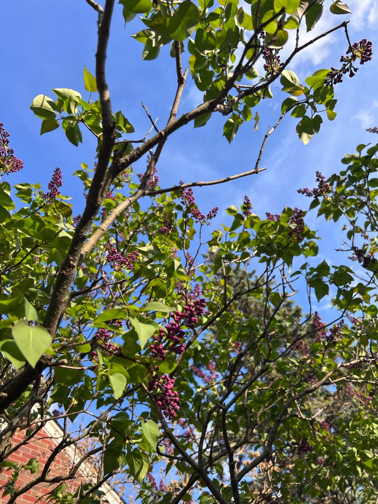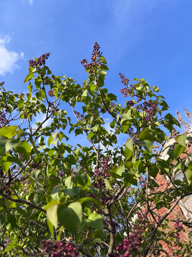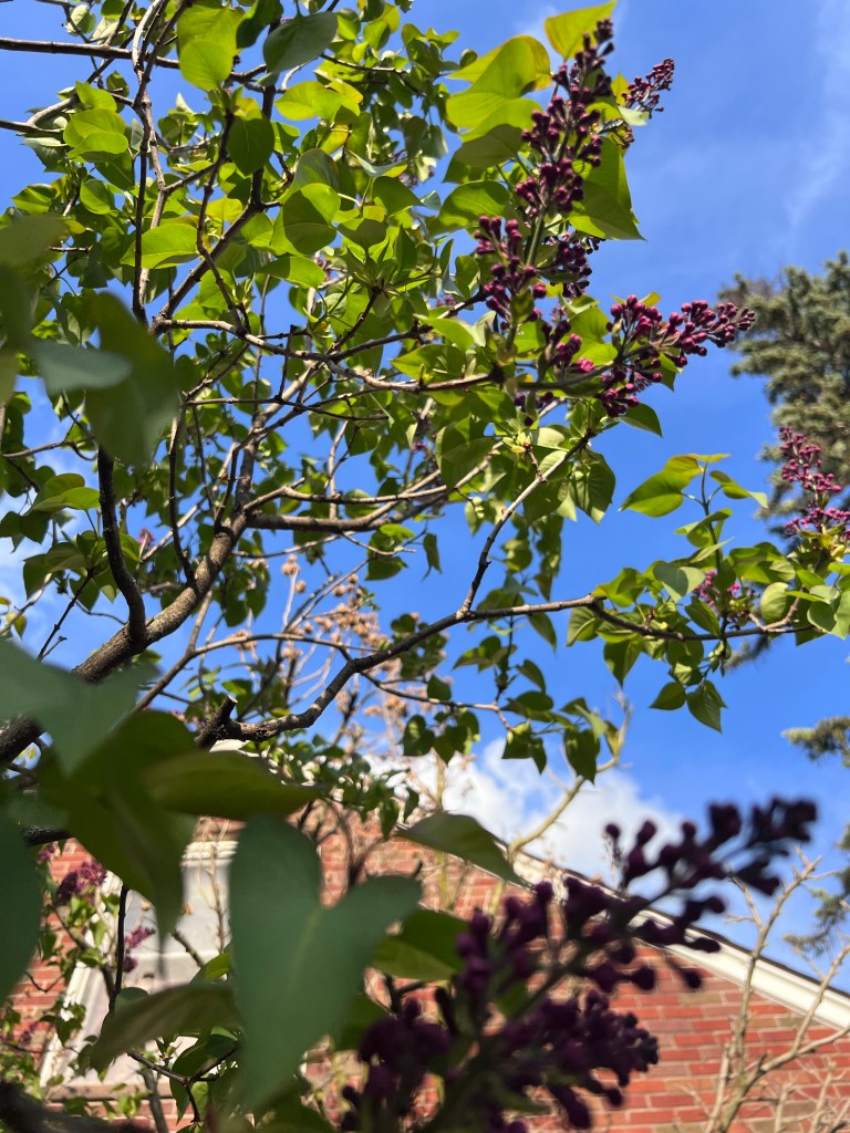 Today started out grey and rainy but the windy afternoon brought us warm weather and sunshine. The lilacs are so close to blooming. I took some photos of them, the blue sky and evening sun really brought out the deep purple of the flower buds. In a few days it will look and smell wonderful!