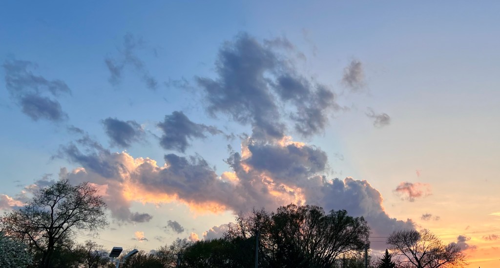 As the sun was setting the clouds were illuminated from behind in an interesting way. Sunrises are a bit more photogenic over the lake around here, but this sunset was pretty spectacular.