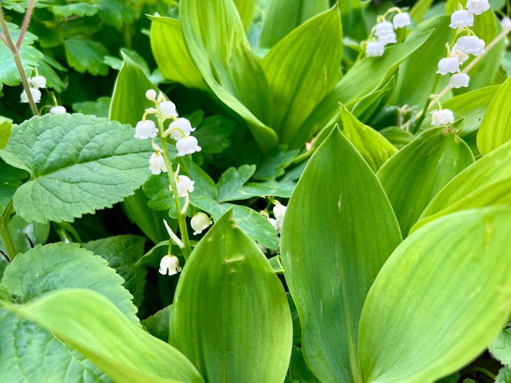 When the Lily of the valley blooms I can’t help but be reminded of my grandmother. I stayed with her for two summers during college at her home on Brevoort Lake in the Upper Peninsula. She was an avid gardener and her gardens were gorgeous. In the spring when the lilies of the valley were all in bloom she would have them in a simple glass vase in the center of the table. I can picture her smiling and laughing across that table from me. Those were wonderful summers and I will always cherish these memories.