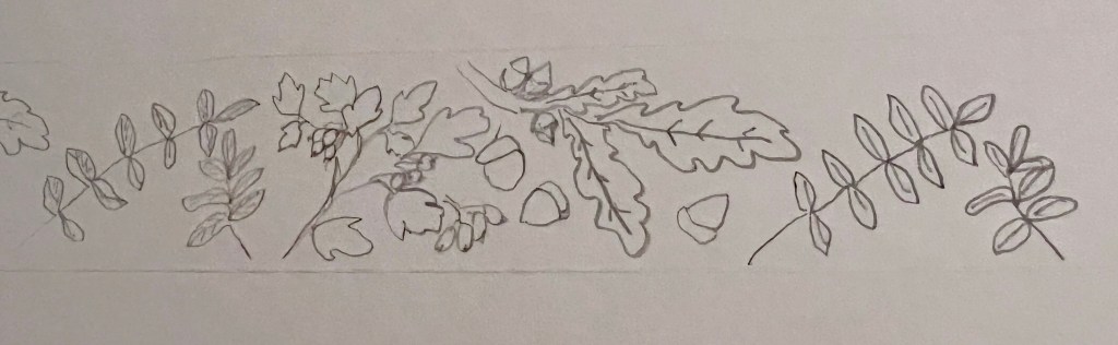Today I was working on a design for a leather belt template at the request of my husband. The design needs to repeat across the length of the belt seamlessly. I think this design satisfies that requirement, but I don’t know if it’s going to have too much negative space. My husband is in bed already so I’ll have to wait until tomorrow for the verdict. This is just my first draft so I anticipate many changes before it is given the green light. Also, as is my habit, I didn’t measure or use a ruler when making this first sketch so that will need to be addressed in future renditions.