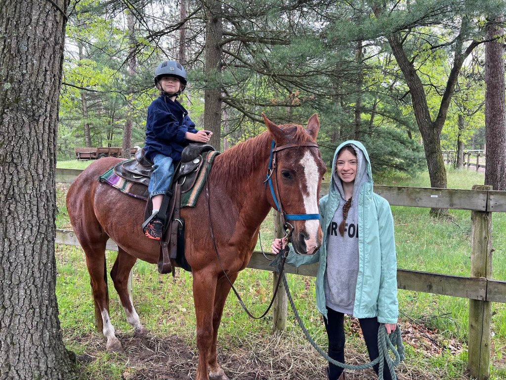 Today was another travel day, but before we packed up and got on the road, my son and I took a trail ride led by my daughter and her friend. In spite of the rainy weather we had a great ride. My son even trotted for the first time. He was on George and Cocoa carried me.
