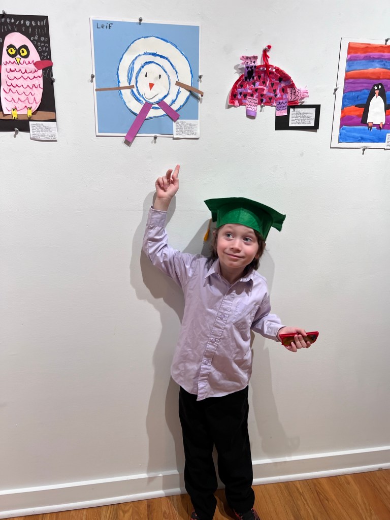 Today was my son’s kindergarten graduation. It was a lovely ceremony- I cried many tears. After the graduation reception we continued the celebration of my youngest son by visiting the Primary student show where he has an artwork on display. Then, his favourite part, we went to dinner across from the Art Center.