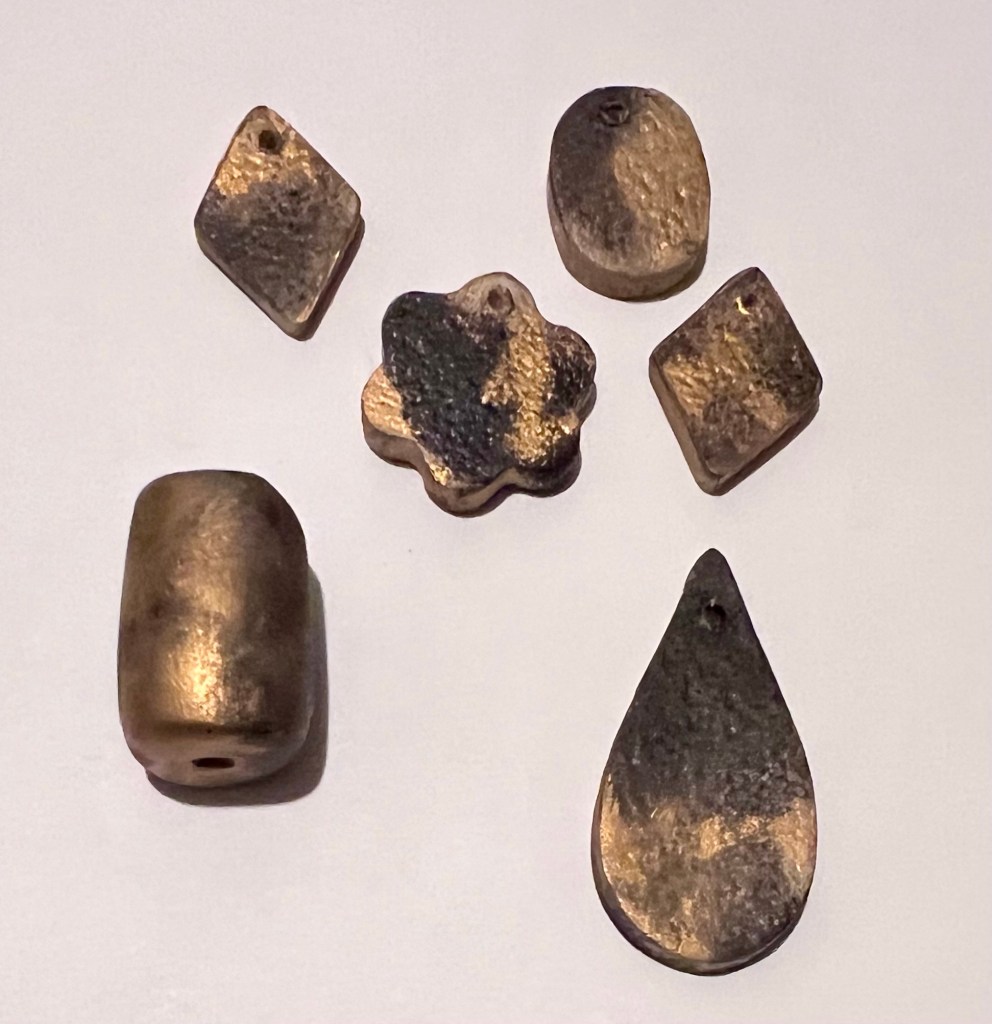Today was Friday which means Zoom with June in the morning. I figured I’d but the gold on my beads and charms and such, then paint a watercolor. Turns out I underestimated the time it takes to put the gold wax on each of these small pieces and buff it to shine. I was using qtips as my wax brush Selwa’s way oversized for this task. The cotton swabs did not hold up to the texture of the underglazed pottery, but I managed to make it work. I like how they turned out, however I didn’t have time left for a watercolor.