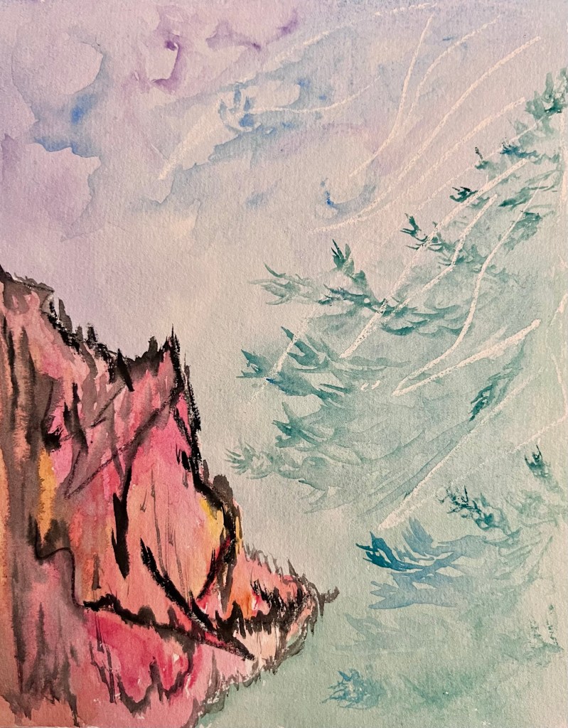 Today I wasn’t sure what I was going to paint when I started, but my mind must have been thinking of the wildfires in Oregon. Last summer our sky was hazy and you could smell the smoke and fumes from the Canadian wildfires. They were quite a ways away, so what we experienced was nothing compared to the people living closer. While we are certainly not completely immune to the changing weather, I feel fortunate that Michigan seems to have it mild compared to the rest of the world.