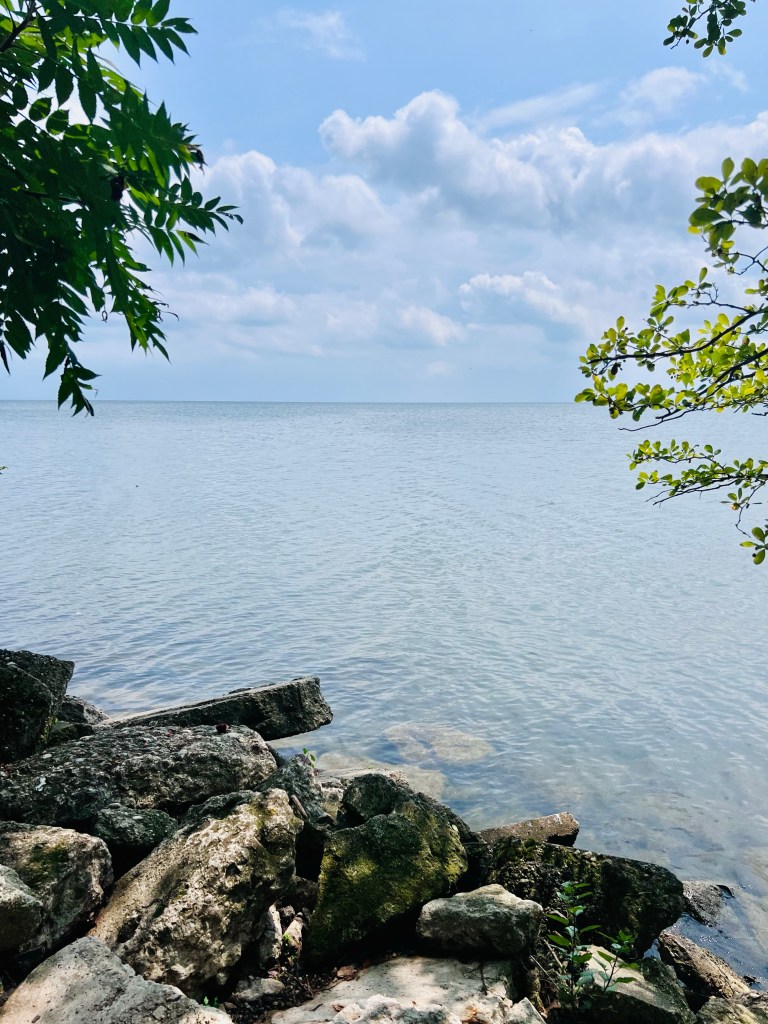 Today started off rainy, but fortunately the weather cleared up for the afternoon and we were able to enjoy the paint-out at the Edsel and Elenor Ford Estate. I got some great photos from the gardens and along the trail around Bird Island. We stopped and painted along the shore overlooking the cove. It had started getting hot and muggy, but we found a nice spot in the shade to paint.