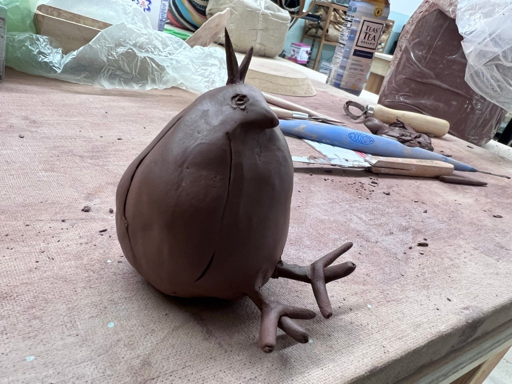 After the skulls I decided to switch gears and make a silly little bird. I made him some fiddly feet, which fell off and I reattached, so we will see if they make it through the process. I had a small amount of scrap clay left which I rolled into a coil to make these two rings. I will probably use them for necklace pendants. I decorated the rings with the end and side of an Allen wrench I found in the bottom of my tool bag.