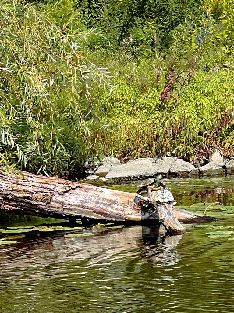We also saw lots of turtles sunning themselves in the Ford Cove. There had to be at least two dozen of them on the sunny side of the shore, a couple on each downed branch or log. My son had a blast seeing all the turtles, as did we all.