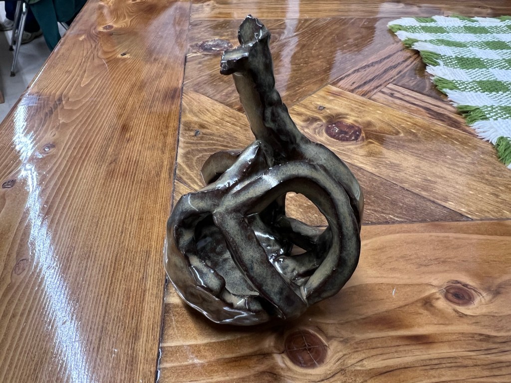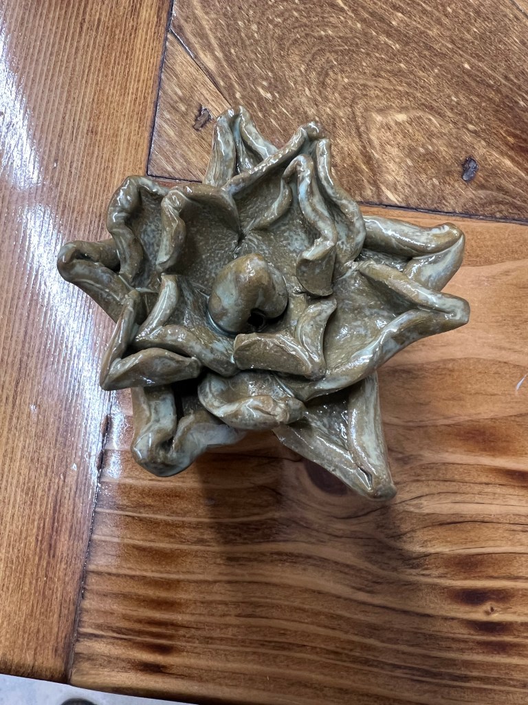 I had a few pieces ready to come home today, including my experimental pear and a succulent. I like the glazing on both of these. I might enter the pear into an upcoming show.