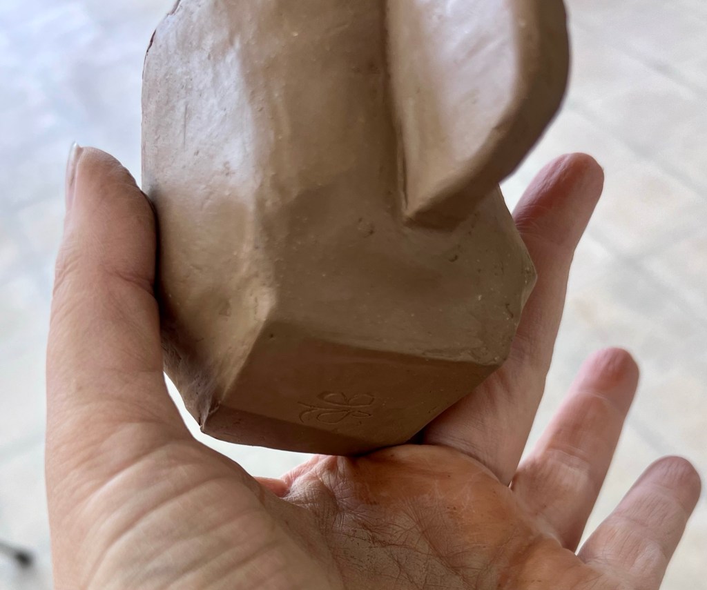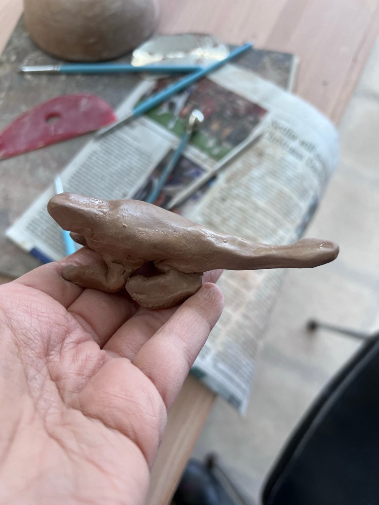 After finishing the cup I had some clay scraps left. I’m using up the rest of my temmstone as the new studio uses speckled buff, therefore I don’t want to have left over clay to reclaim. It was enough to start on the ankylosaurus that my son requested. I got the basic shape, but the clay needed to absorb a little water before I continued, so I wrapped it up to finish next week.