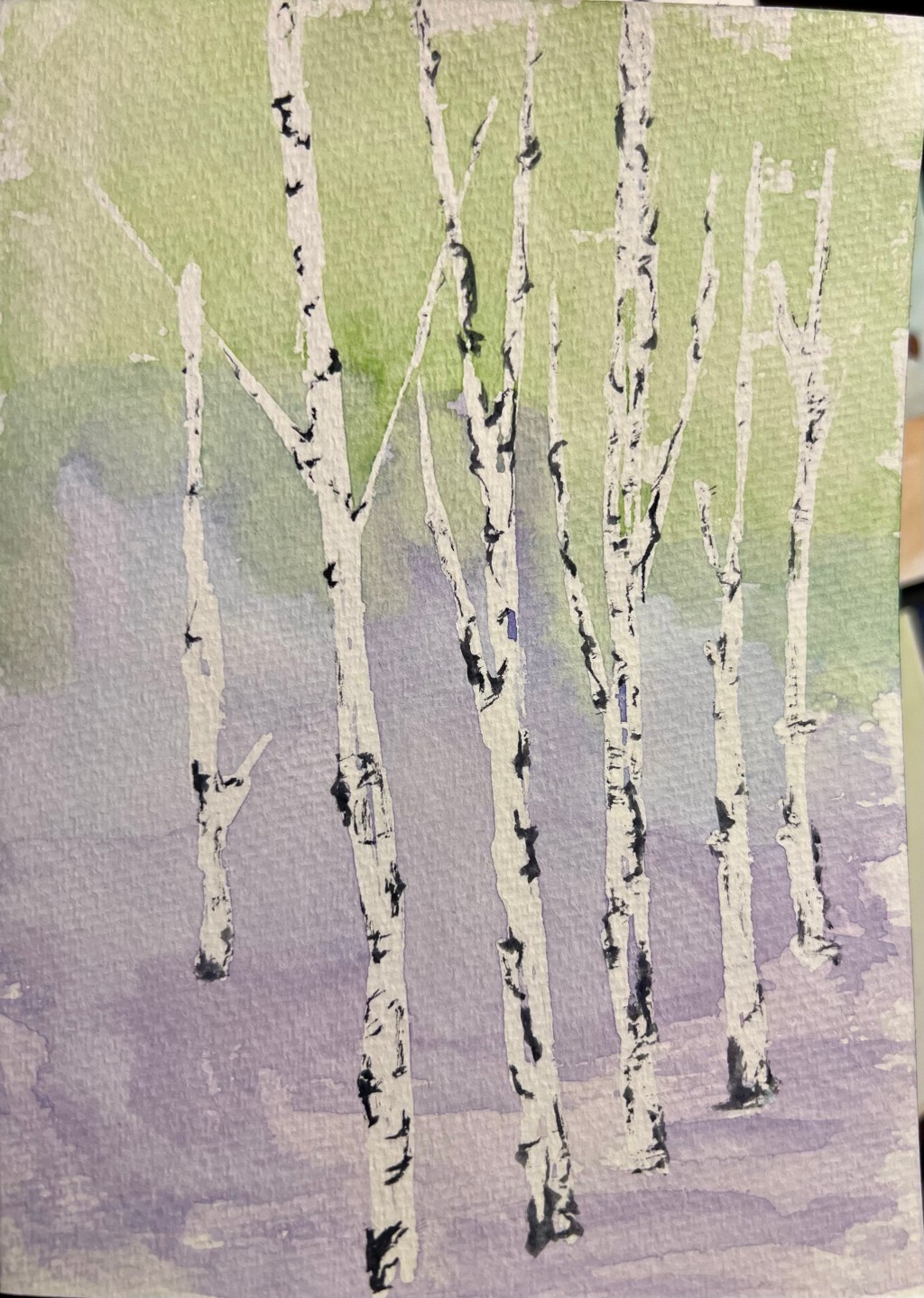 I have had too many funerals this year. But these sad occasions have inspired me to create handmade sympathy cards to give to the family. I made this one featuring a grove of birch tree to bring to Uncle Mikes memorial service tomorrow. I find the process of painting while thinking of the deceased and praying for comfort for their families, to be healing for myself.