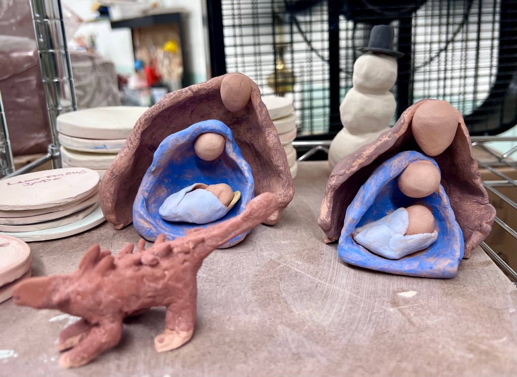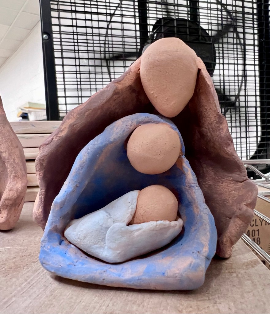 After the heron, I will red on glazing my nativity sets, the snowman, the ankylosaurus, and the demitasse mug for my husband. I changed up the colors on my nesting nativity figures, setting them apart from previous versions.