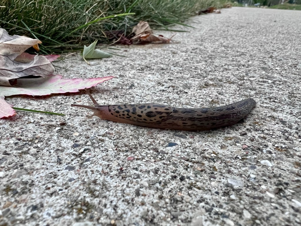 I’m a bit obsessed with the giant slugs that are out when we walk to the bus stop each morning. Although my son chided me for personifying the slugs. “They can’t talk so they aren’t coming out to say ‘Good Morning’ to us, Mom.”