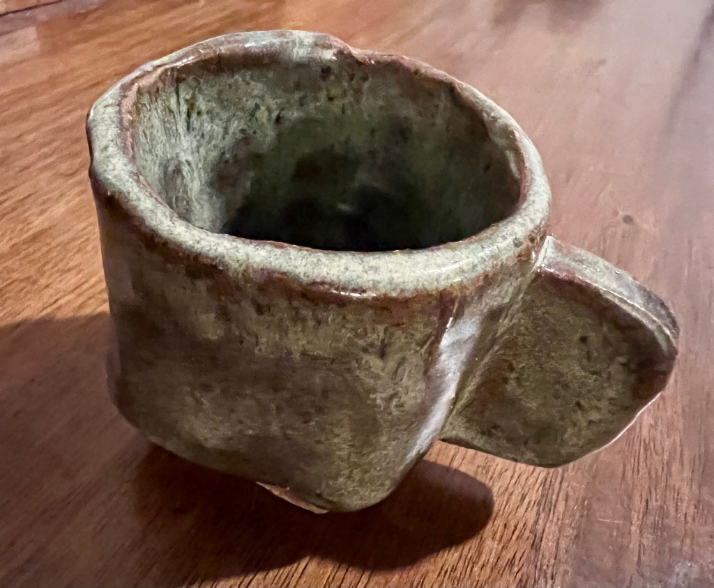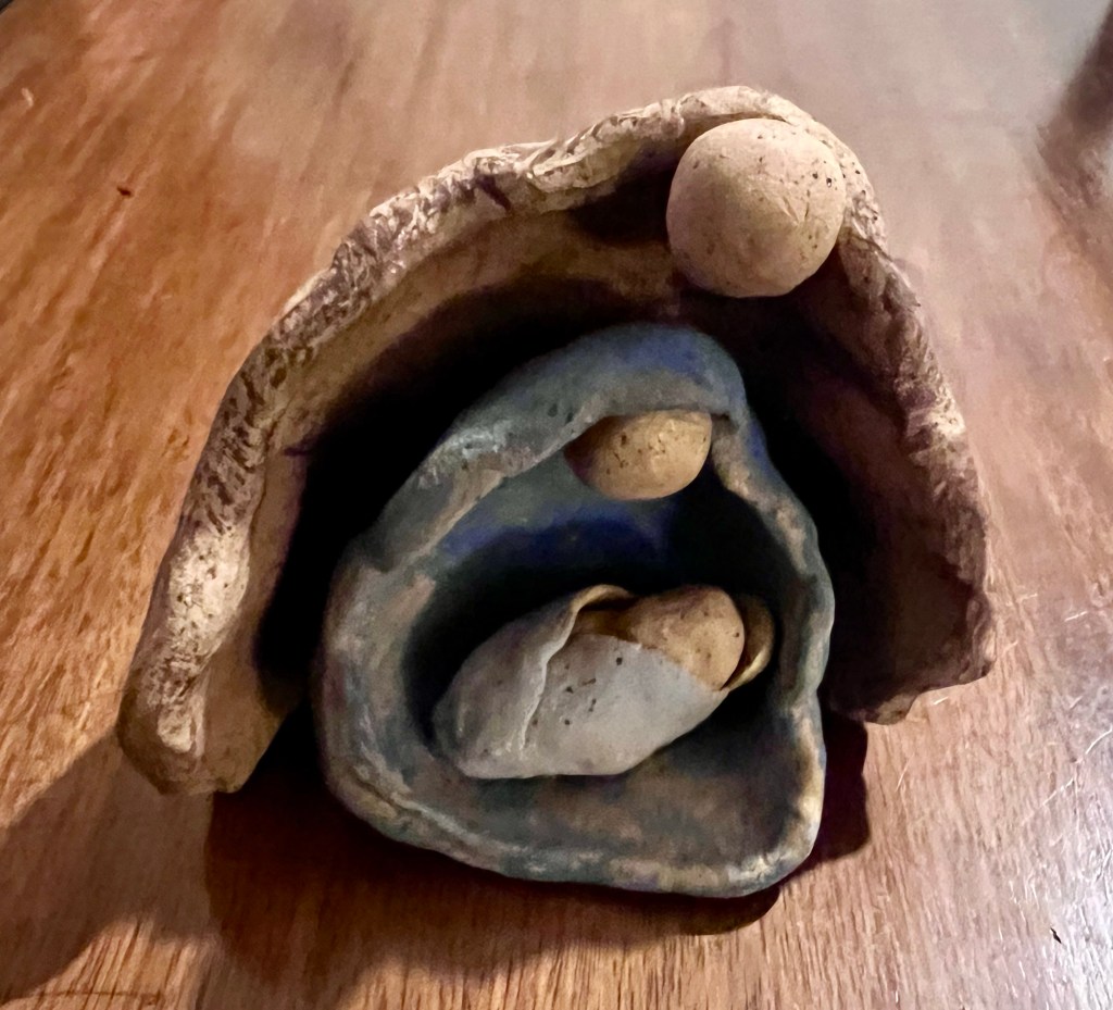 Today was a good haul day for my finished pottery pieces. I brought home two nesting nativities, a snowman, an espresso demitasse mug for my husband and my blue heron wall sculpture. I put away the heron in a safe spot and will take some good photos tomorrow in the daylight, so you’ll have to wait to see that one. But the rest turned out great too. My husband likes the demitasse- he only has a handle detail that he’d like changed. So I’ll get to the mark2 mug soon.