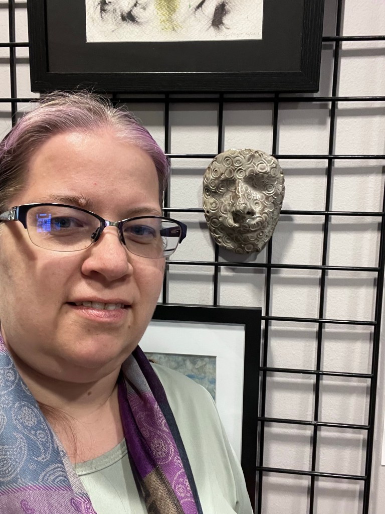 Today was the opening for the My Masterpiece show at the Grosse Pointe Artist Association. I have two pieces in this show, a Georgia O’Keefe inspired Watercolor and a ceramic face sculpture inspired by the plaster cast faces of Marisol Escobar.