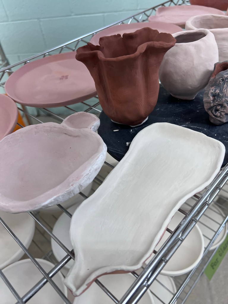 Today I was able to get to the clay studio. I had quite a few pieces ready to be glazed. I spent the whole time glazing pieces, and was quite productive. I spent a good hour working on my cherry blossoms. I decided to use underglaze so I don’t need to worry about stilling it or having it stick to the shelf.