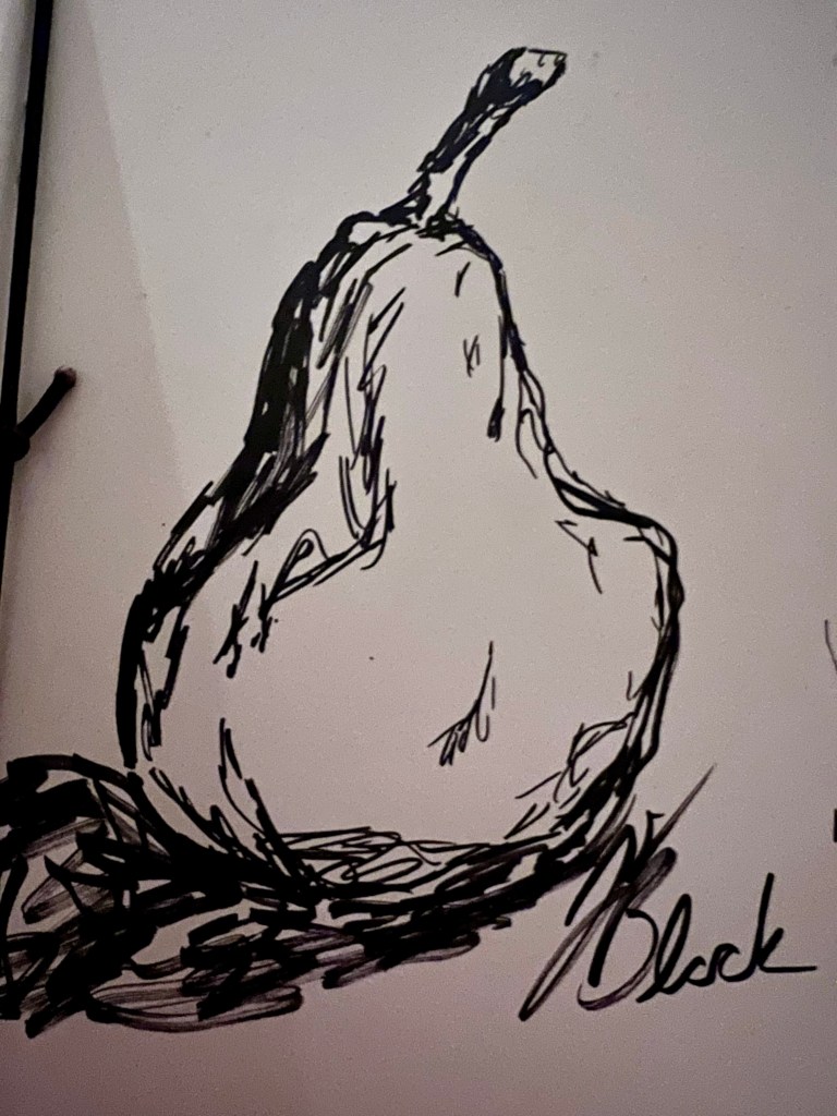 Day light savings time has ended for the last time again- or so I’ve heard every time the clocks are reset again. The fall isn’t as bad as losing that hour in the spring, but I’m still thrown off by the change. As I go about my usual Sunday routines, I feel off and discombobulated. I struggled to decide what art to make so I decided to ‘fall back’ to my ol’ standard of pears.