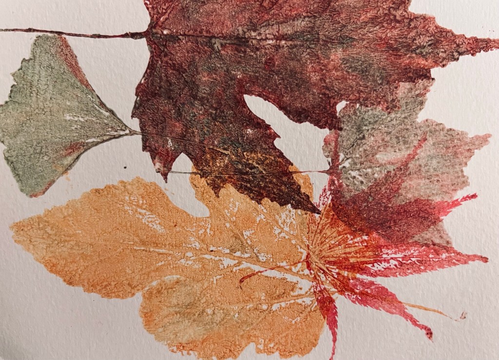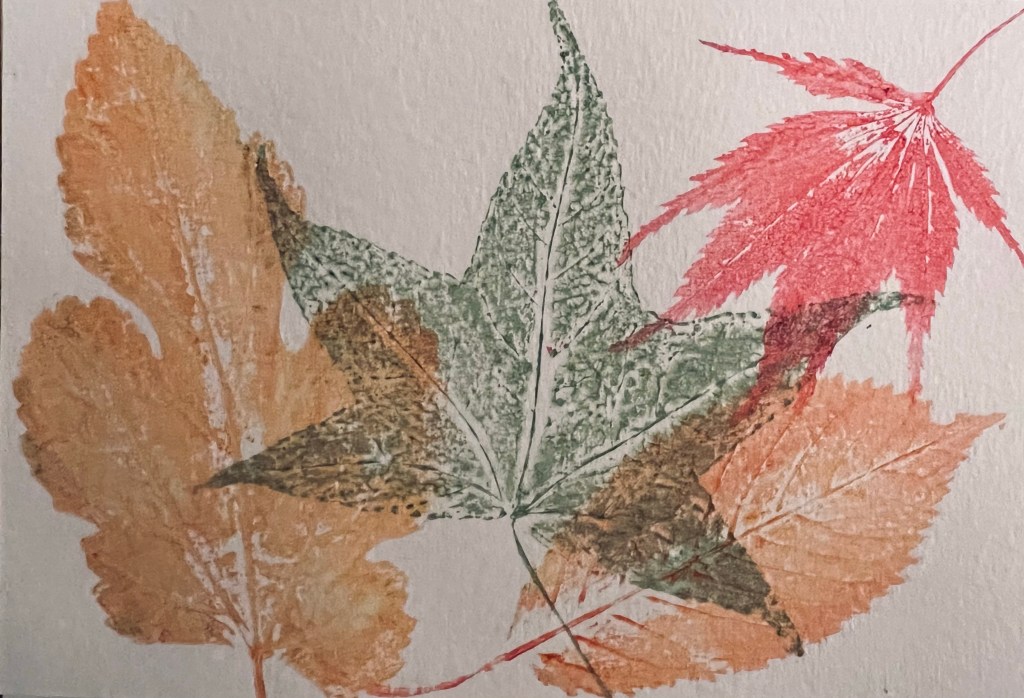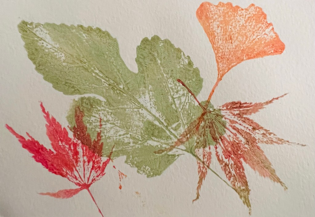 Today my youngest son and I took a leaf printing class with Nobuko Yamasaki at the GPAA. Leif had a lot of fun, although we had a little meltdown when I accidentally broke one of his dry leaves while helping him ink the leaf. He eventually recovered, and we continued with our prints. In fact, he later insisted I use the offending leaf, and I put green over the red that dried on the leaf already. It turned out quite vibrant and opaque; see if you can spot it in the prints below.