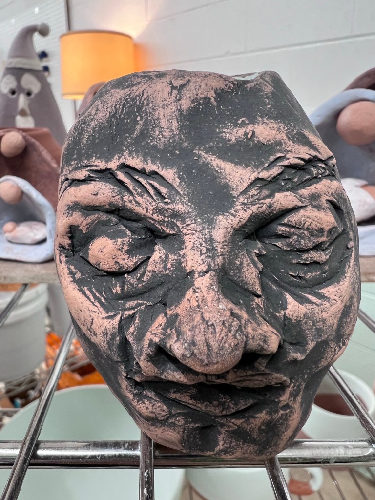 Today is Wednesday and that mean clay studio day! I had a couple finished pieces and several ready to glaze. I started by glazing my three nesting nativity sets, then some mini owls, an ugly face vase, and a small textured dish.