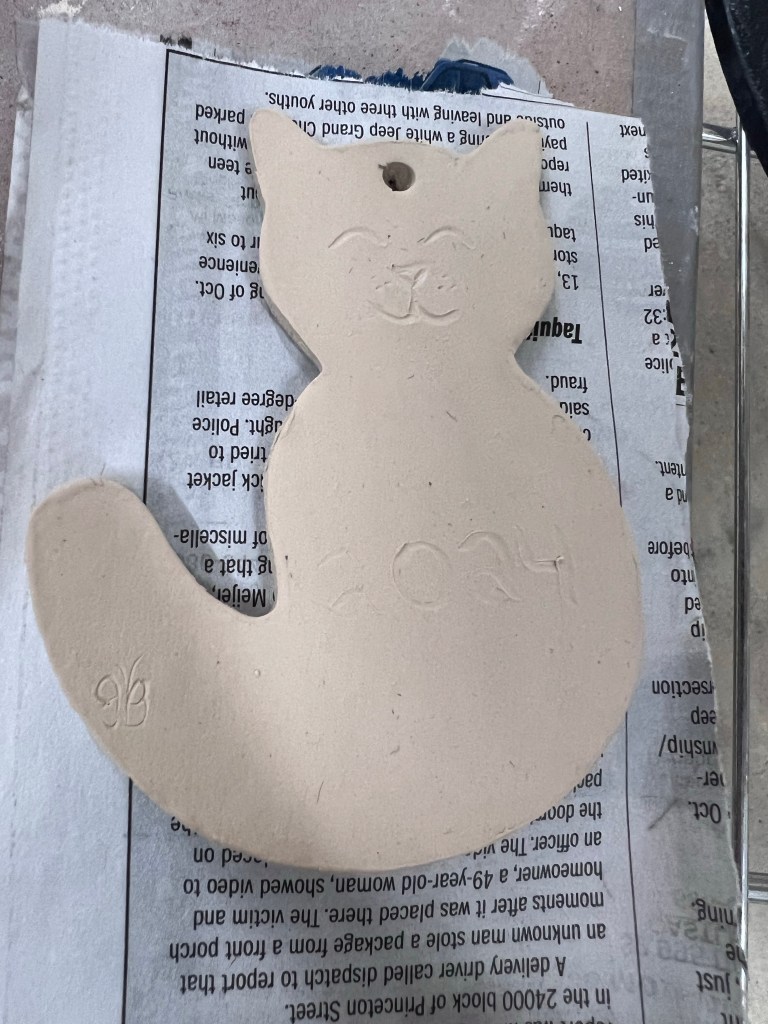 I then decided to roll out a slab and texture it with lace. I then used my kitty cutter to make some ornaments to give away this year. I’ll underglaze both sides and but a clear coat on the lace side. I hope they turn out as good as I am imagining.