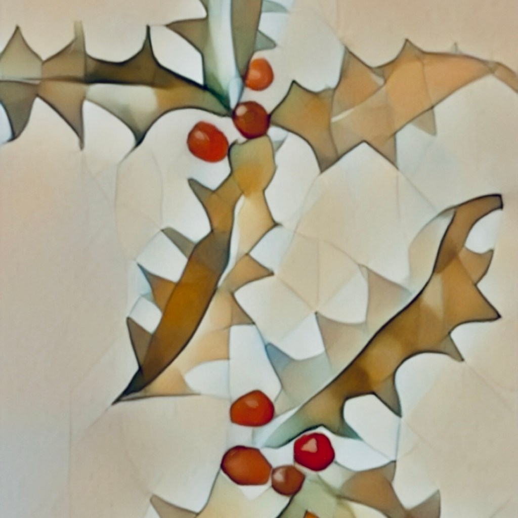 I did take my Holly designs and gave them the filtered light treatment. I like how they turned out. I may print out the pinecone one to use as cards or bundle and sell at the pop up event.