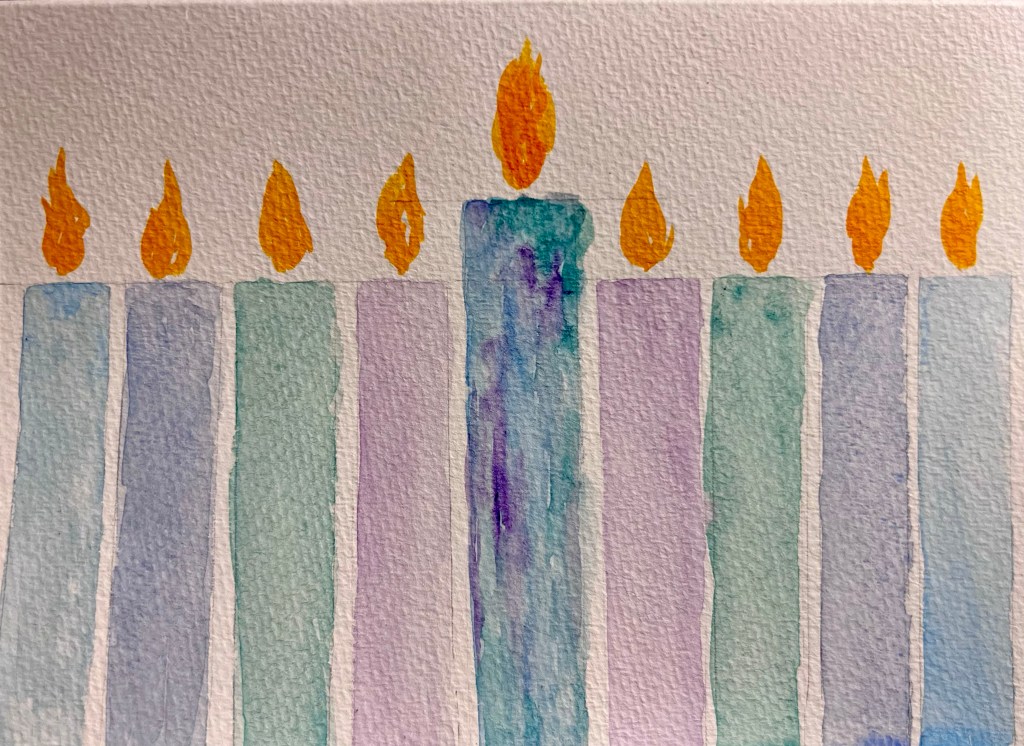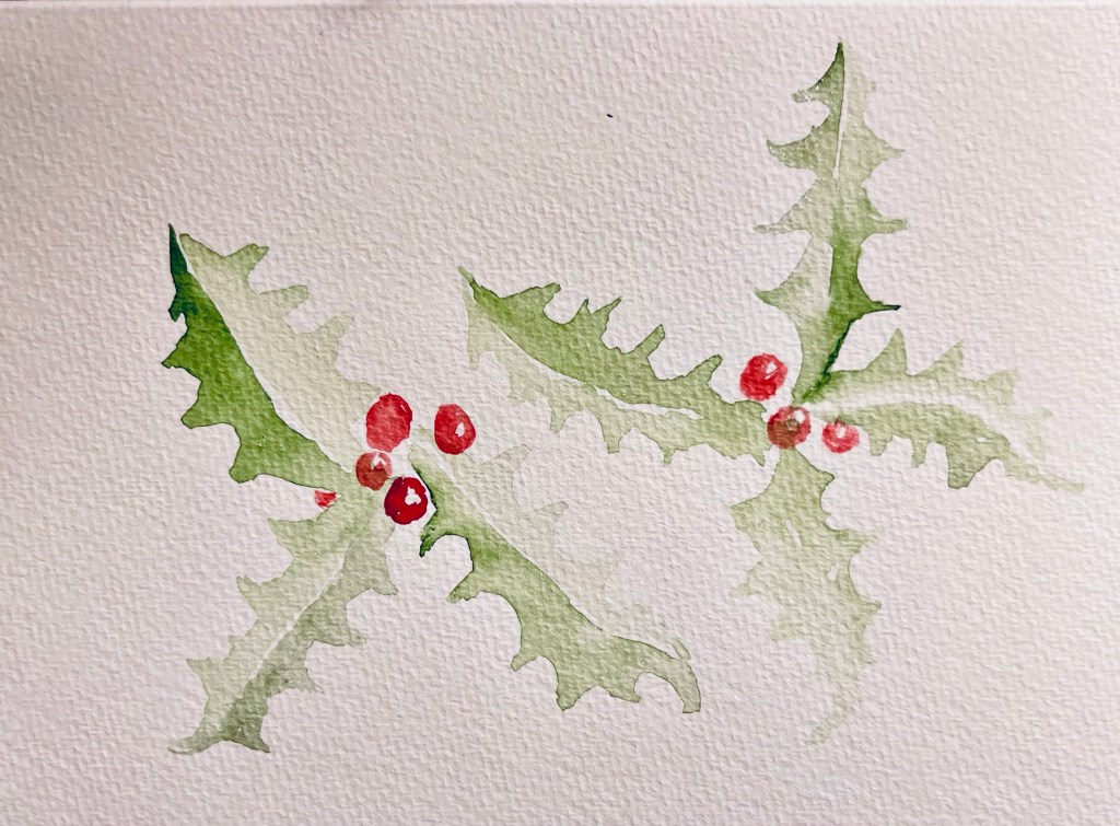 Today during our Zoom with June session I worked on painting some holiday cards. I had planned on getting a whole stack done, but I take my time and enjoy painting these too much to be fast. So I finished three cards in our Zoom, before it was time to log off and get other tasks completed.