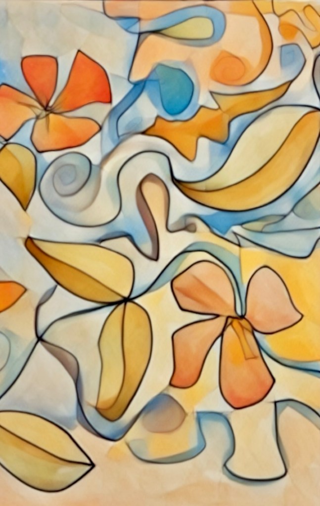 Today I was expecting to have some majorly sore muscles from yesterday’s workout, but I was pleasantly surprised that I wasn’t too sore. I jumped into a big organization project and spent most of my day working on that before the busy evening descended. Once everyone was quiet for the night my activity from the past two days caught up with me, so I decided to give a few of the paintings that were stacked on a shelf I tackled the filtered light treatment. I especially like the first one on the page today, because it really drew my attention to the doodle at the top of the painting. It looks like a man stopping and smelling the flowers.