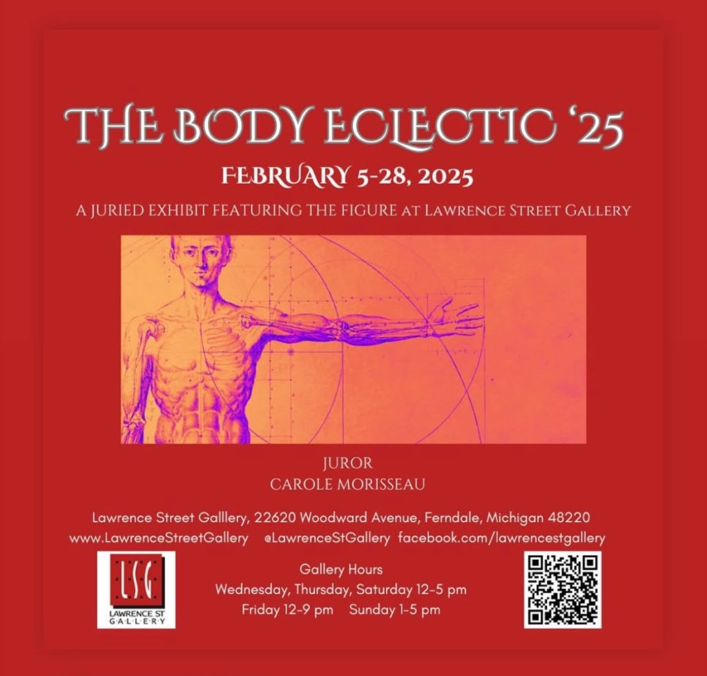 This afternoon I dropped off my piece for the Body Eclectic show at the Lawrence Street Gallery in Ferndale. If you haven’t been to this gallery yet, I highly recommend you check it out. And if you’ve been there in the past, you should check it out again- they have fresh new work every month. I have made it a point to stop by for the last few shows, before finally entering one of their calls myself.