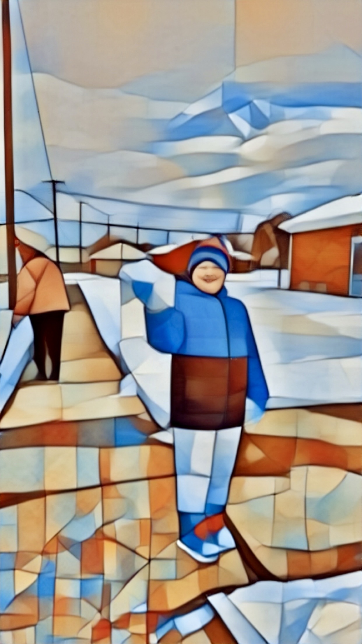 Since there was a snow day I was hoping to be able to go back to sleep for a bit, but my youngest was up at his usual time, eager to play video games with me. In the afternoon, I went over to my sister’s house to clear her snow and boy did the snow get heavier by afternoon. While I was working my sisters neighbors came by to walk their dog and this young man showed me his snow chunk. I thought it looked like a fish and he posed for a picture with his catch. He then entertained me by showing me all the differently shaped snow chunks he could find. I told him he had an artist’s imagination!