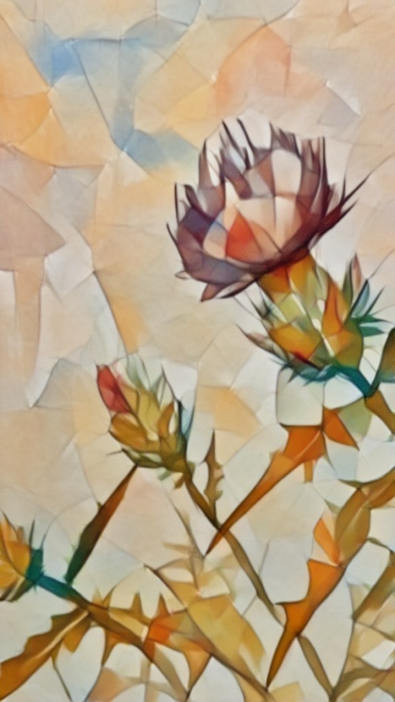 Having been working on submissions for upcoming, I have a few photos of older works in my recently edited folder. They pop up first when I open my photos app and I realized that I hadn’t made any Filtered light versions. I first worked on the Thistles, in the hopes that the summer flowers may herald warmer days ahead. my birthday is Tuesday and it’ll be sub zero in the morning, only barely making it up to the double digits in the afternoon.