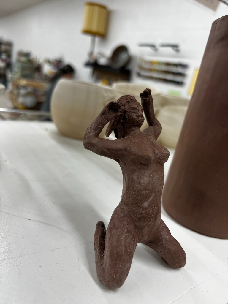 Today I finished my female figure sculpture that I started last week. I probably should have pulled up some reference photos, or even just looked at my own hand, to help make sure my proportions were correct, but I just winged it. It didn’t occur to study my own hand to figure out how long the thumb is in proportion to the fingers until I was home for a bit.