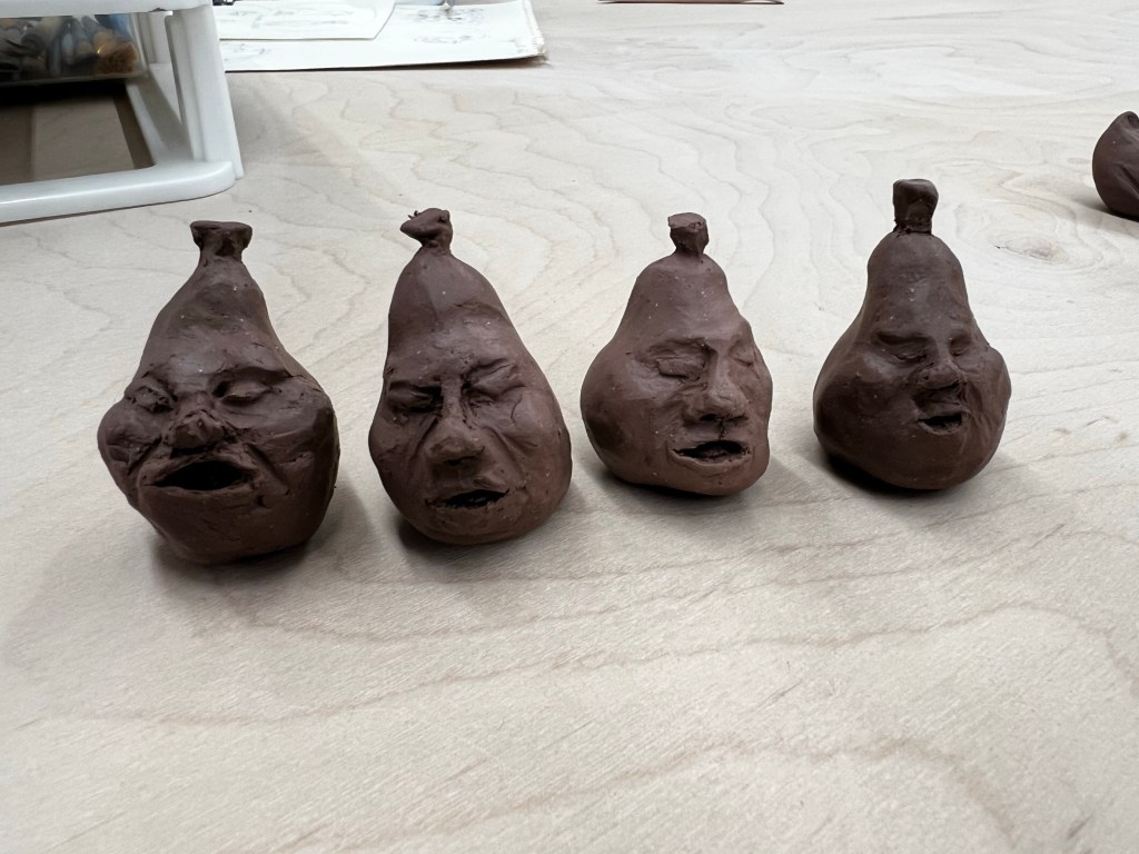 I made three more little pears before the studio was closing for the evening. I like them all but that first one is my favorite.