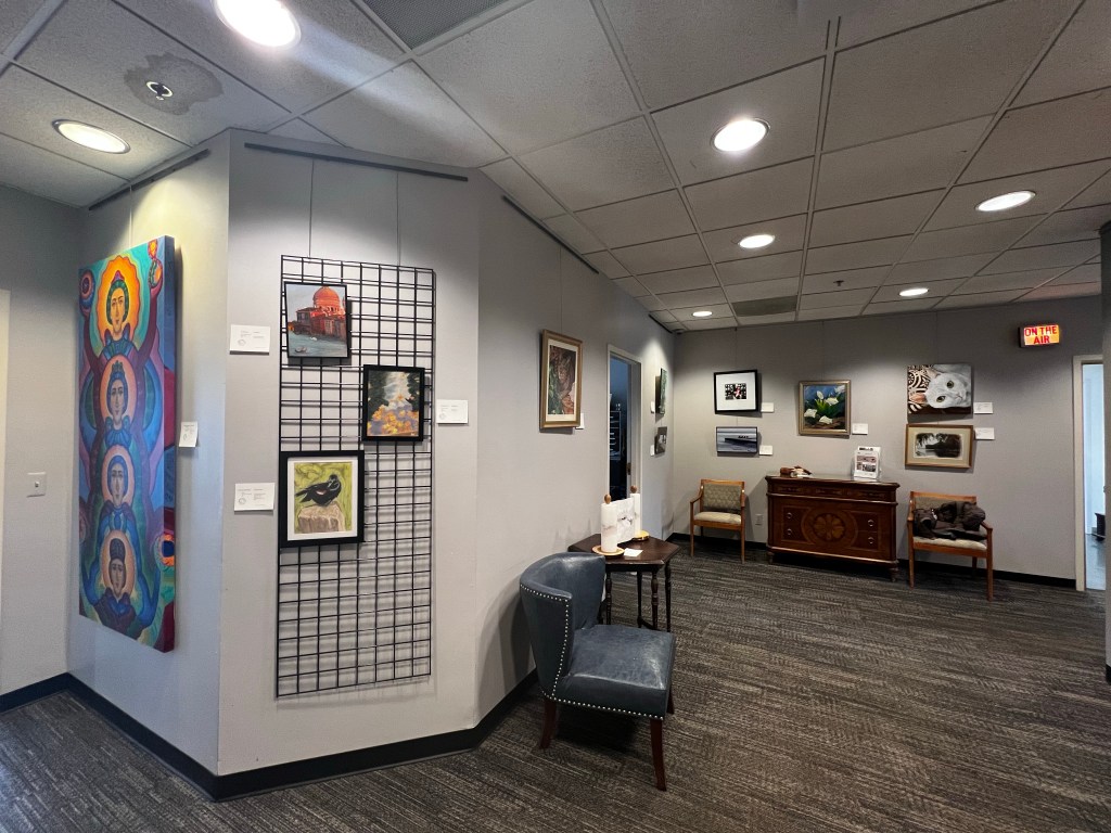 Today was another busy day filled with art adjacent activities. I helped with the installation of the Blues show in the GPAA’s main Gallery at the War Memorial. I also fought with my printer and word to get the labels for the LPC’s Favorites show printed with the right size font. It kept shrinking everything down to where it was nearly impossible to read without a magnifying glass. Luckily, we were able to hang the LPC show last night so I just needed to add the labels and take pictures of our exhibit. It looks great, as well as the Blues in the hall and main gallery.