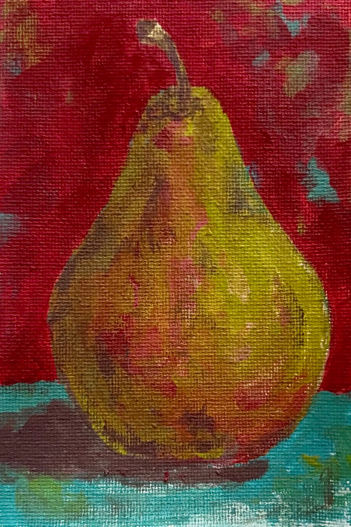 Today I was using the supplies in my most recent sketch box shipment for our weekly Zoom with June session. I decided to make a pear- no surprise there- for my trial run. I liked how it turned out so I figured I could make a coordinating picture of a bunch of grapes. The grapes were much more of a chalk for me as I don’t think I’ve ever painted or sketched them before. Luckily for me with acrylic painting you can go over and redo it until you like it without it getting muddy and overworked like in watercolor.